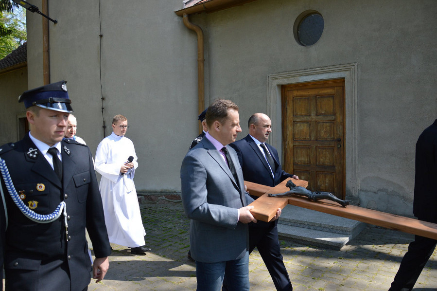 Uroczysta Msza Święta, przy licznym udziale wiernych oraz delegacji rozpoczęła się od procesyjnego wejścia i wniesienia owego krzyża w asyście druhów strażaków z OSP Kołodziejewo oraz Służby Liturgicznej.